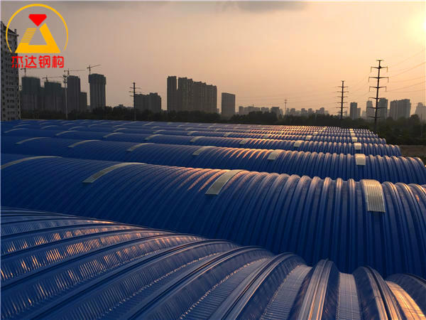 施工前需定制專(zhuān)用的拱形屋頂采光帶,確保尺寸和曲率精準(zhǔn)匹配。組裝過(guò)程中,在每榀拱形屋頂中部安裝兩道角鋼支撐,提高結(jié)構(gòu)穩(wěn)定性。