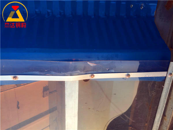 安裝時,兩側(cè)先壓上鍍鋅或鍍鋁壓條,并用鉆尾釘固定。
