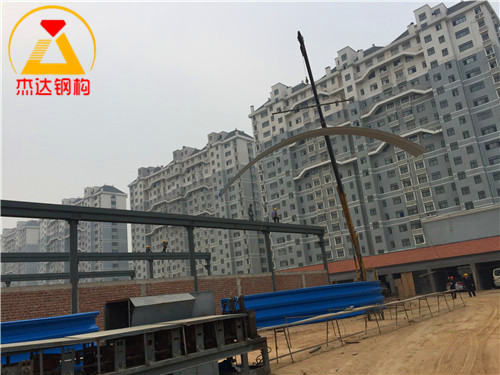 從施工現(xiàn)場照片可以看出,鋼結構的焊接與安裝工藝規(guī)范,連接部分設計合理,確保了整體的安全性能。該拱形屋頂?shù)脑O計不僅兼顧了結構強度,還考慮了施工的便捷性和經(jīng)濟性。
