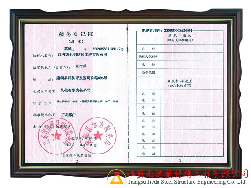 江蘇杰達(dá)鋼結(jié)構(gòu)工程有限公司稅務(wù)登記證