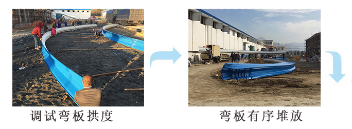 3.施工現(xiàn)場(chǎng)要在建筑旁留有一定空地(其面積視工程大小而定)作為放自動(dòng)滾壓機(jī)車(chē)拖車(chē)制作拱板和堆放成型后的拱板用地,當(dāng)屋面跨度較大時(shí)吊車(chē)設(shè)在室內(nèi)吊裝,因此施工要在山墻處留出入口。具體施工方案與土建施工單位協(xié)商確定。