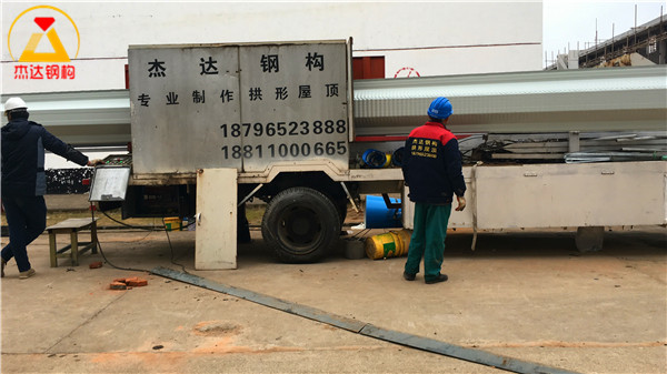 施工團(tuán)隊(duì)歷時(shí)15天完成了包括焊接托板、屋面板壓制、組裝和吊裝等關(guān)鍵環(huán)節(jié)。江蘇杰達(dá)鋼結(jié)構(gòu)工程有限公司的專業(yè)團(tuán)隊(duì)嚴(yán)格按照工藝標(biāo)準(zhǔn)進(jìn)行操作,確保了結(jié)構(gòu)的穩(wěn)固與安全。