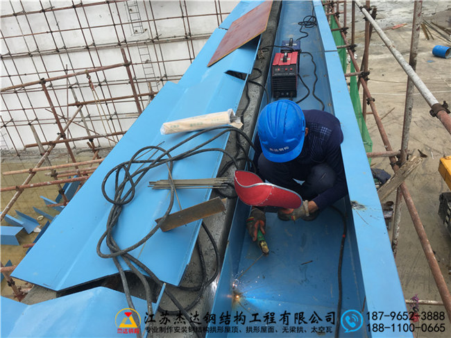 施工過(guò)程中,重點(diǎn)完成了吊裝拱形屋頂?shù)淖鳂I(yè),確保結(jié)構(gòu)定位準(zhǔn)確。下部結(jié)構(gòu)焊接包括天溝和托板,提升連接處的牢固性和耐久性。