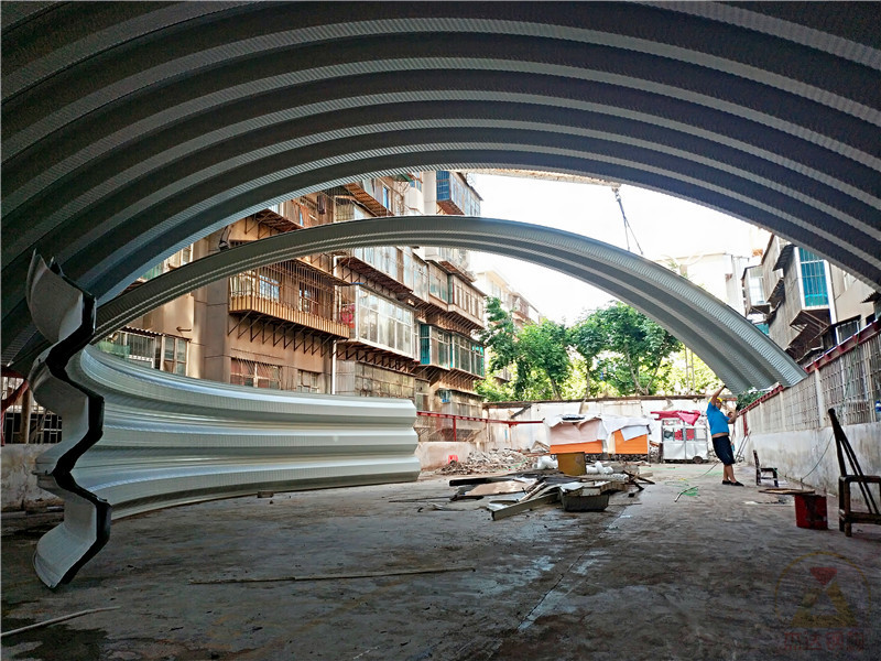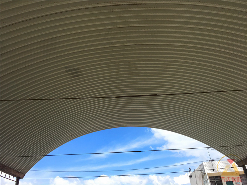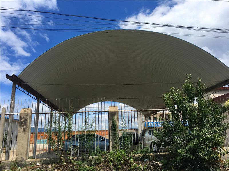 1. 云南昭通12米跨度拱形屋頂車棚翻新工程