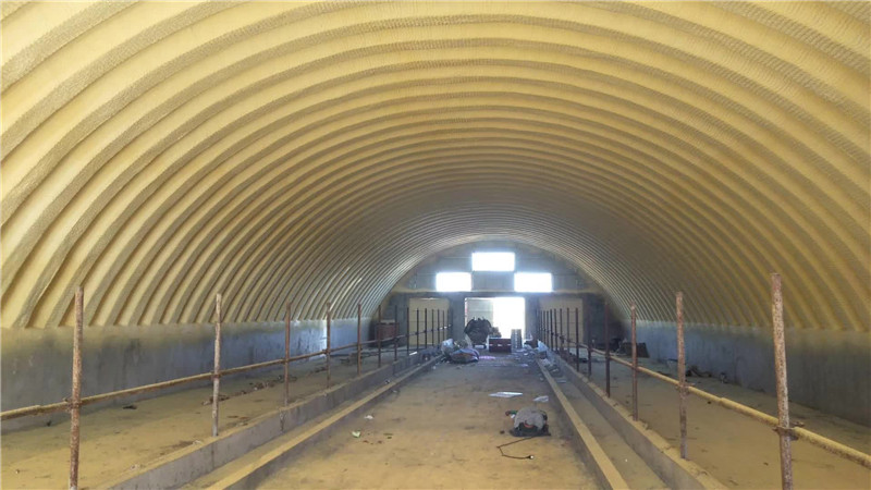 1. 拱形屋頂內(nèi)側(cè)噴涂聚氨酯保溫