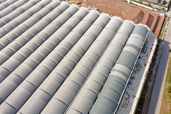 屋蓋采用單坡形式拱形結構,具有良好的排水與抗風性能,結構穩(wěn)定,便于后期維護,適用于糧酒等生產場景中對潔凈度與空間利用率有較高要求的廠房結構。