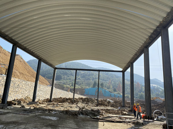 本項(xiàng)目體現(xiàn)了拱形屋頂結(jié)構(gòu)輕巧、自承能力強(qiáng)、安裝便捷等優(yōu)勢(shì)。通過(guò)采用高強(qiáng)彩涂鋼卷與標(biāo)準(zhǔn)化壓型工藝,施工過(guò)程高效有序,有效克服了空間狹小、設(shè)備移動(dòng)受限等現(xiàn)場(chǎng)難點(diǎn)。